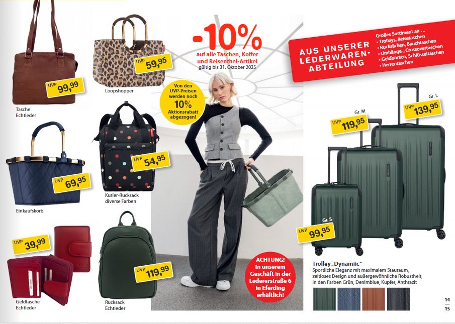 neu-gestalteten Taschenabteilung im Erdgeschoß!
