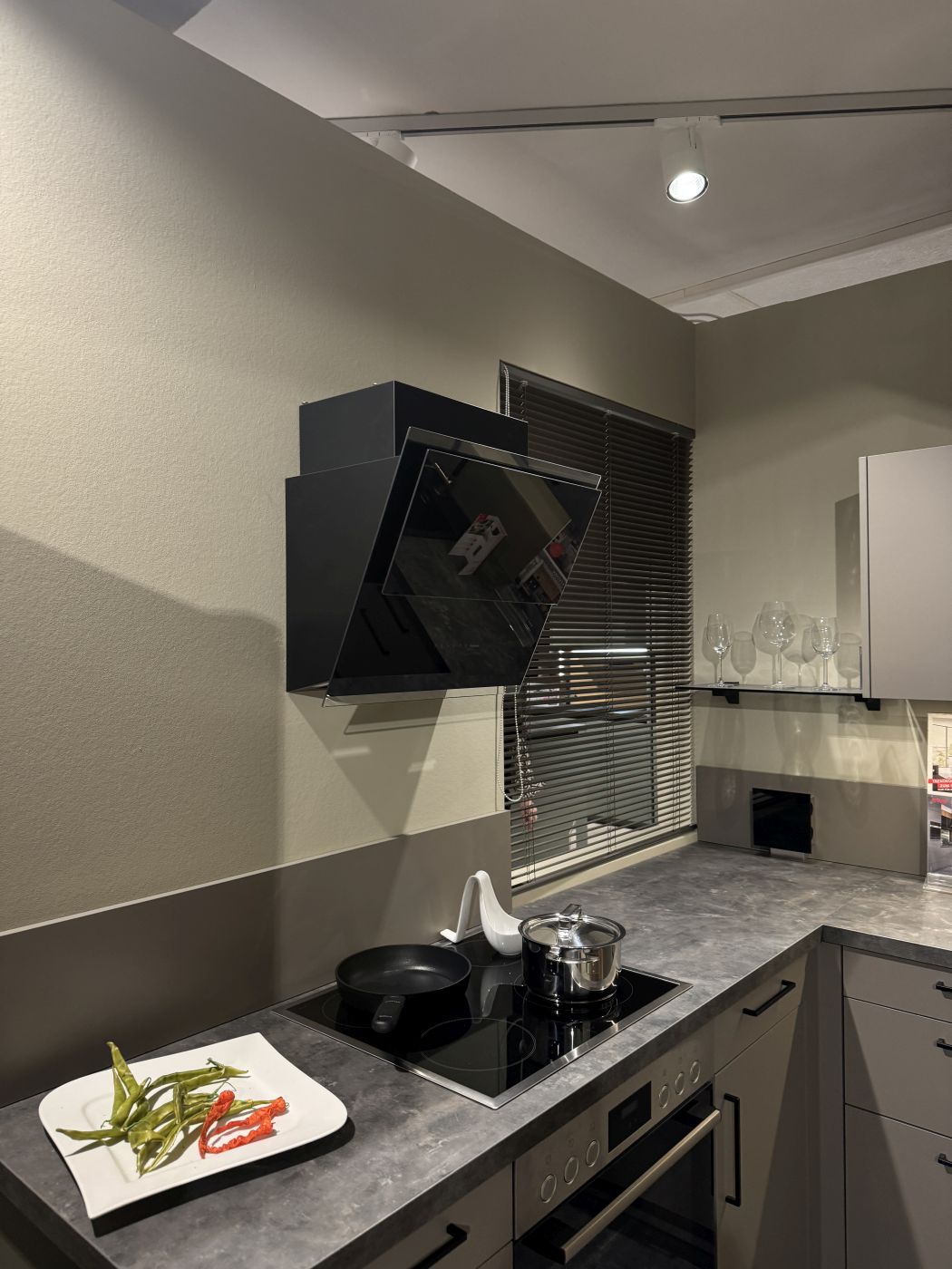 inkl. Spüle + Armatur, Kühlschrank, Herd, Cerankochfeld, Geschirrspüler und Dunstabzug-Haube